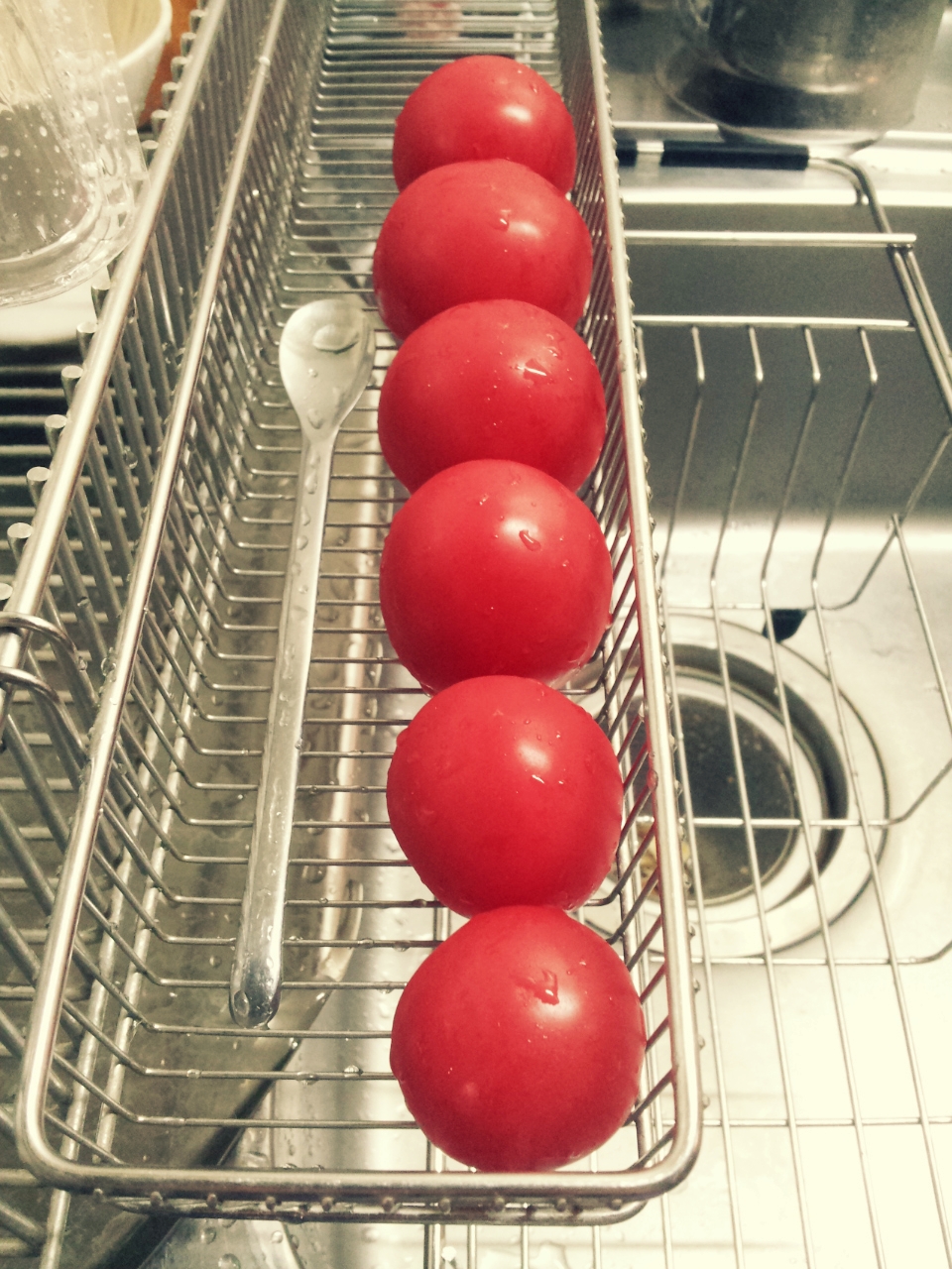 こんなところでもビーカー。一時的にレモン汁を入れておいて、いろいろに使うとき。