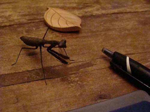 茶色くて小さいカマキリさんでした。