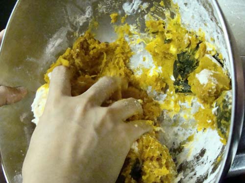 なんとか、生地の完成です!かぼちゃパンですね~(笑)