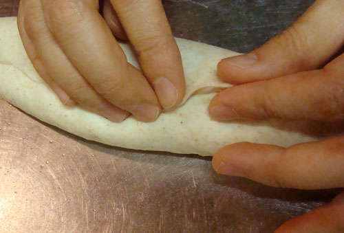 ちょっとだけ綴じ目を押さえて、溝を作ります。