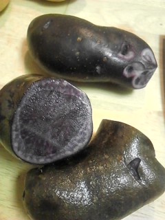 黒いじゃがいもが売っていて