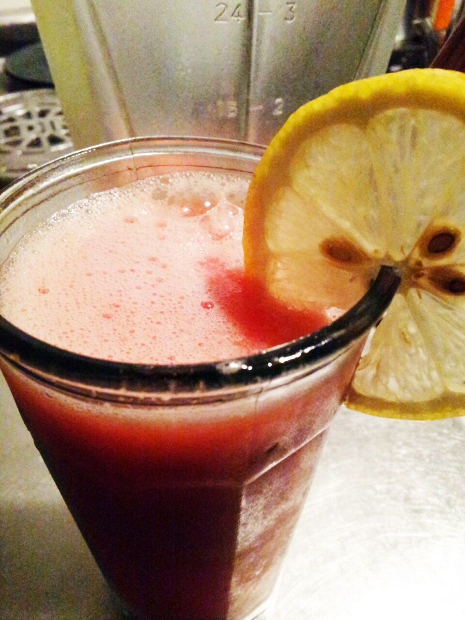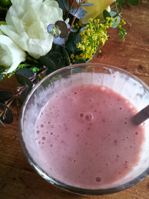 薬さじの後ろ側で種を取って皮のふちまで小削げとり、氷を入れてビャーッとミキサーにかけたら、とてもさっきのふかふかスイカとは思えない素晴らしいジュースができました。レモン汁は甘味が嫌いな母のリクエスト。