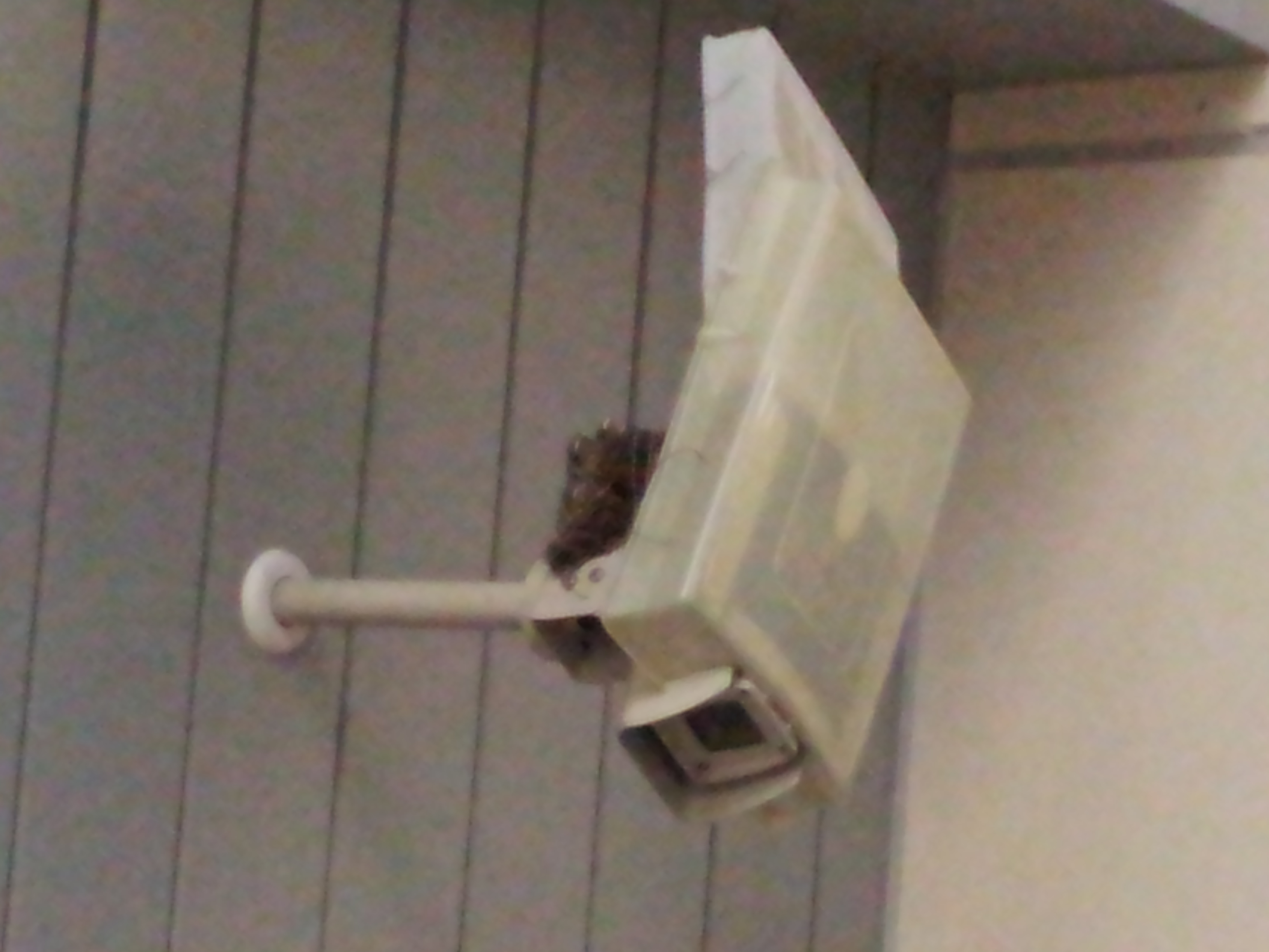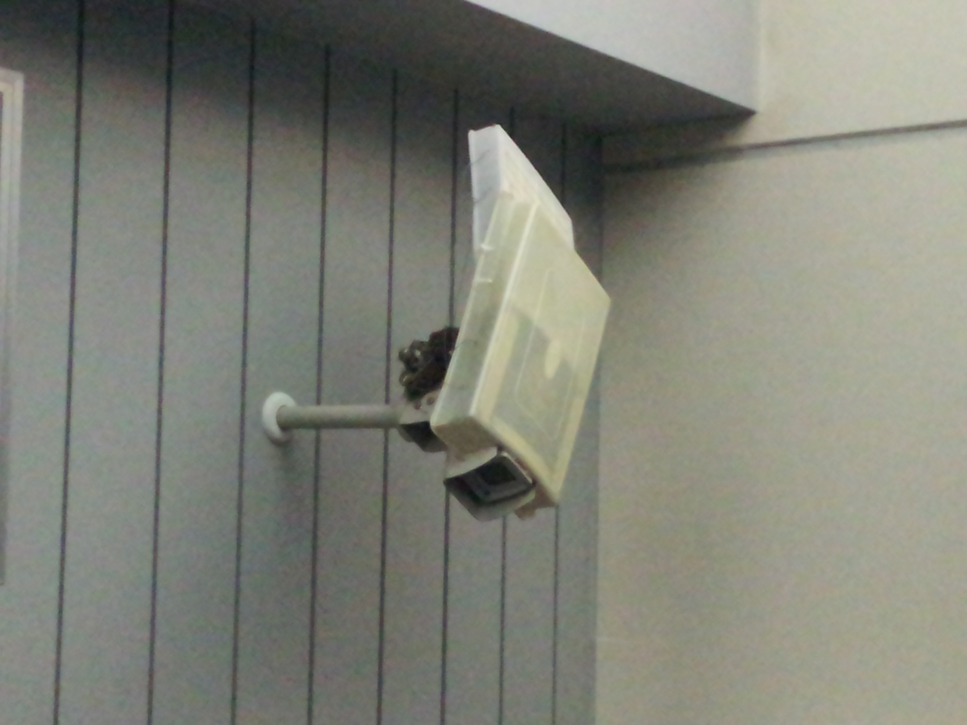 防犯カメラの上は孵化したけれど、こっちはまだのようです。この左奥の隙間に巣があります。これは数日前ですが、昨日通ったら片方は巣の上で、片方はこの日と同じように外側に見張りしていました。テンパってるっぽかったから、もうすぐ産まれるのかも。