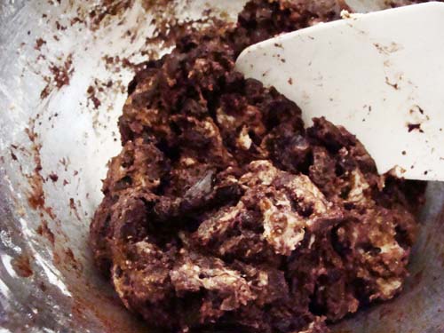 生地を軽~くこねてから、ミンス、ココア、油を入れます。